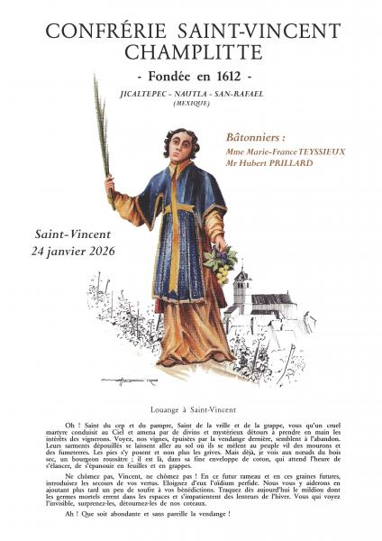 414ème édition de la traditionnelle Saint-Vincent Champlitte. Rendez-vous à 9 h 15 sur le parvis de l’église pour le couronnement des épousés et procession vers la cour d'honneur du château. Célébration à l’église à 10 h et procession à 11 h 15. Menu traditionnel servi dans les restaurants de Champlitte. Infos : 03 84 67 64 47 ou 06 89 01 55 91.